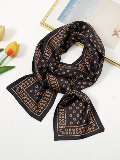 Horseshoe Pattern Skinny Scarf - Multicolor - View 1