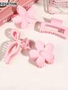 1pc Plus Size Women's Bohemian Floral Hair Clip - Shiny Flower Hair Accessory, 5-Petal Design, Black/Red/Pink/Gold/White/Purple Tones, Suitable For Women, Elegant Hair Decor, Applicable For Christmas, Valentine's Day, Wedding, Party And Daily Wear - Anti-Slip Fixing Hair Claw, Multifunctional Hair Clip, Suitable For Braiding And Bun Hairstyles Elegant Claw Clips