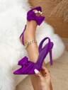 Women's Fashion Pointed Toe Hollow Out One-Strap Thick High Heel Party Shoes, Purple