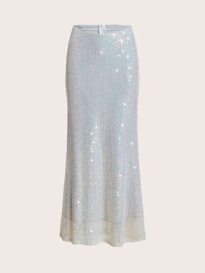 SHEIN ICON Sequin Maxi Mermaid Skirt - Silver - View 1