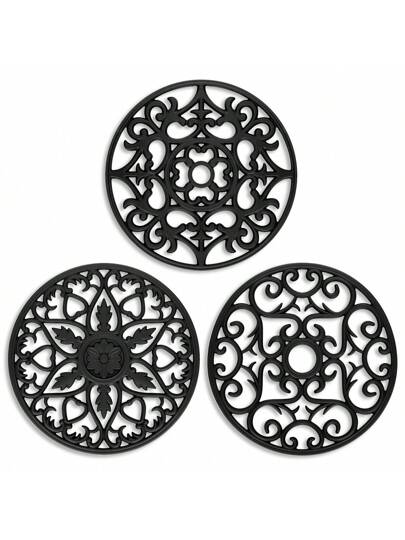 Set Of 3pcs Traditional Silicone Trivet Mat - Non-Slip & Heat Resistant Kitchen Hot Pads For Countertops & Table - Kitchen Trivets For Hot Dishes & Cookware - Hot Pot Holder For Pots & Pans - Turquoise, - Black - View 4