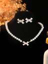 4pcs Luxury Rhinestone Embellished Necklace, Earrings And Bracelet Set, Versatile For Women's Daily Commute, Campus Date, Wedding Party, Valentine's Day Holiday