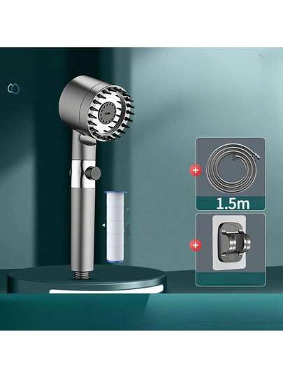 Shower Head With Handheld Filter, High Pressure 4 Spray Modes Shower Head With Filter, With 1.5m Encrypted Explosion-Proof Hose And Bracket - Grey - View 1