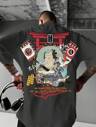 Shwiy 2PCS Set Men's Vintage Washed Black Short Sleeve T-Shirt And Drawstring Shorts, Minimalist Fashion Outfit,Suitable For Spring And Summer Daily Wear, Anime/Manga Graphic Print T-Shirt, Ideal Gift For Otaku