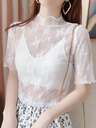 2025 Autumn Lace Stand Collar Undershirt Women, Mesh Slim Fit Stand Collar Fashionable Blouse Top