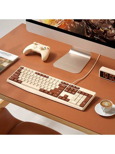 Silent Wired External Keyboard For Laptop, Suitable For Typing Games, Office Work, Ergonomic Design - Coffee Brown - View 1