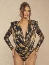 Silquee Women's Tie-Dye Purple-Brown Stretch Mesh Printed Long-Sleeved Bodysuit. Asymmetrical Crossover Slim Fit, Classic And Elegant Design, Suitable For Commuting And Everyday Wear, Also Great For Layering In Autumn And Winter. Perfect For Graduation Parties, Christmas, Dates, Parties, And Girls' Night Out.