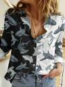Mother's Day Floral Print Casual Button-Up Long Sleeve Shirt, Women's