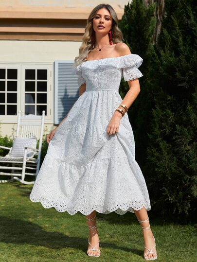 Simplee Women's Summer New Embroidered Solid Strapless High Waist Dress, Party Dress, Music Festival, Graduation Party - White - View 1