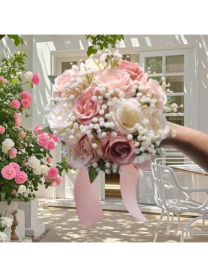Simulation Handheld Bridal Bouquet, Artificial Rose Bouquet, Bride Wedding Photography Prop, Wedding Decoration. - Champagne - View 1