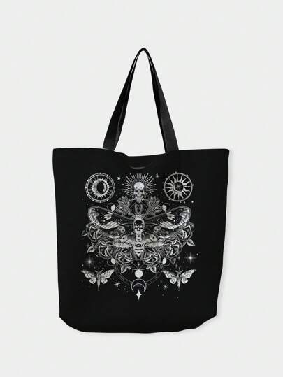 ROMWE Goth Skull Butterfly Double-Sided Printed Canvas Tote Bag - Multicolor - View 1
