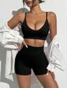 Slayform Flocked & Mesh Patchwork Drawstring Hoodie And Pants Seamless Sports Suit Workout Women Set Women Leggings Set