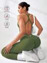 Slayform 2pcs Women Seamless Leopard Print Criss-Cross Thumb Hole Long Sleeve Cropped Leggings Sports Set, Sexy & Suitable For Running, Fitness, Yoga