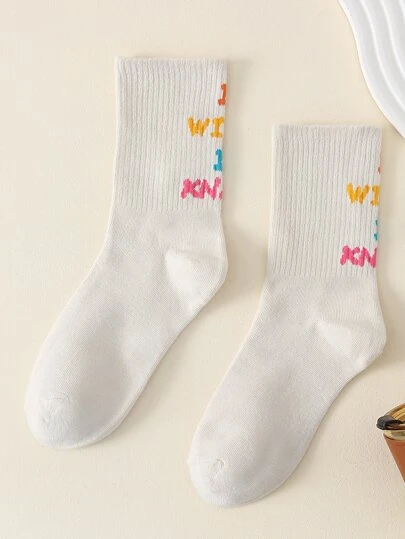 Slogan Graphic Crew Socks - Multicolor - View 1