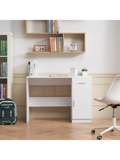 Small Desk With Drawer, Kids Desk For Bedroom, Wooden Simple Study Table For Drawing, Reading, Writing, Rectangle MDF Study Storage Table With Adjustable Shelf For Home, Office, White - White - View 1