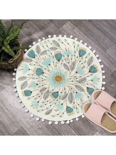 Ultra Soft Velvet Material: This round rug is made of Polyester. Not a very thick rug but the fibers are dense enough. Low pile soft fibers provide a comfort foot feel and that's suitable for high-traffic areas than high pile Lovely Pom Pom Design: The circular rug introduced an unexpected element: POM POM Tassels! Create a warm and soft vibe. White pom-poms combined with energetic teal tone will brighten your home like summer day and bring you refresh and delightful feeling Non Slip Latex Backing: We insist that the anti-skid performance of this round bathroom rugs is not negligible. The bottom is made of 100% rubber, which gonna grip the floor more firmly, prevent shifting or slipping Easy to Clean: This round throw rug using flocked technique, fiber is firmly locked onto the backing without fiber-shedding issue. Tips: Wash in cold water. Use gentle wash mode. Tumble dry on low heat or lay dry in the air Multifunctional Use: The modern circle rug can be used at bathroom, entryway, living room, bedroom, den, nursery, kid's room. It will blend with any existing home decor. Note: adopted printing and dyeing, so the colors are on the top layer Tip:We recommend put the rug in a mesh bag to machine wash