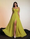 This Luxurious Olive Green High-Neck Sequin Chiffon Evening Gown Features A Thigh-High Slit, Elegant And Formal, Suitable For Galas, Formal Dinners, Red Carpet Events, And Other Occasions. It Can Also Be Worn As An A-Line Maxi Dress, Wedding Guest Dress, Pageant Gown, Formal Event Dress, Graduation Dress, Bridesmaid Dress, Or Other Special Occasion Chiffon Dress.