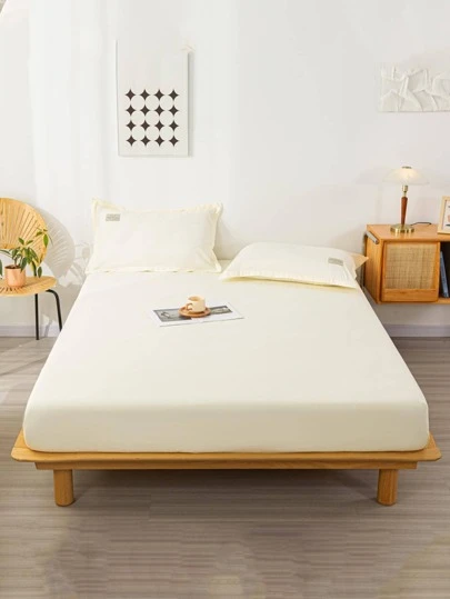Solid Color Fitted Sheet, White Simple Fabric Elastic Band Fitted Sheet, For Bedroom - White - View 1