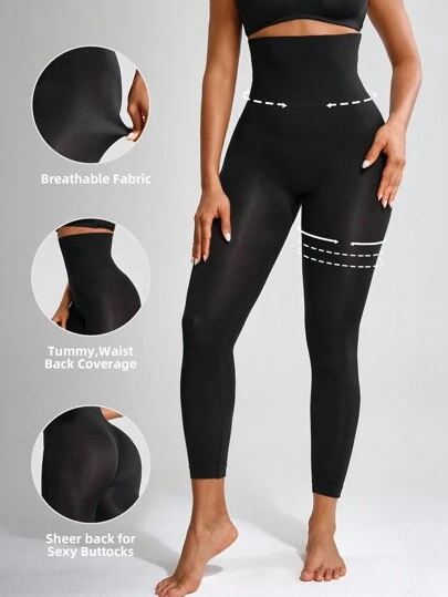 Solid Color High Waisted Tummy Control Pants - Black - View 4