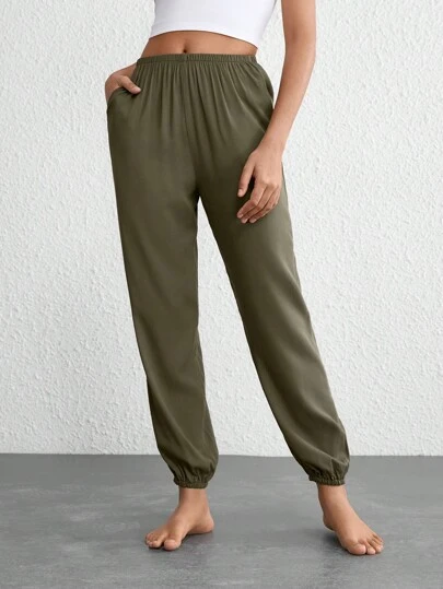 Leisure Solid Color Home Wear Bottoms - Army Green - View 1