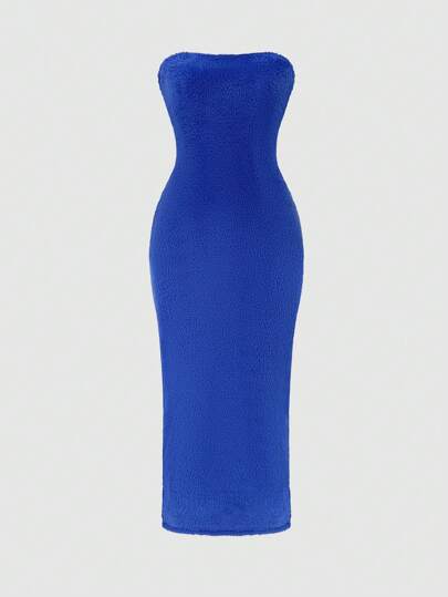 SHEIN Unity Solid Color Strapless Bodycon Dress - Royal Blue - View 1