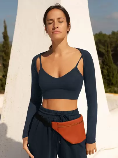 SHEIN Essnce Solid Crop Bolero Shrug Top Without Cami - Navy Blue - View 1