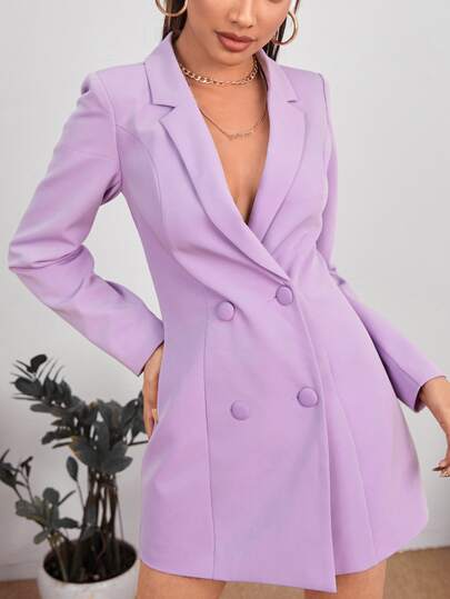 SHEIN PETITE Solid Double Breasted Blazer Dress - Lilac Purple - View 1