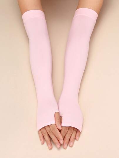 Solid Fingerless Long Gloves - Pink - View 1