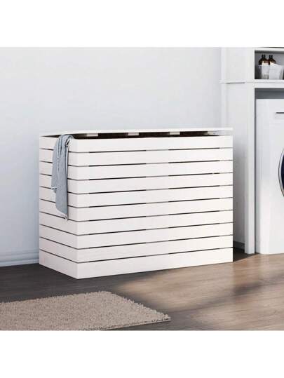Solid Pine Wood White Laundry Basket 88.5x46 Cm Spacious Durable Storage Solution - White - View 1