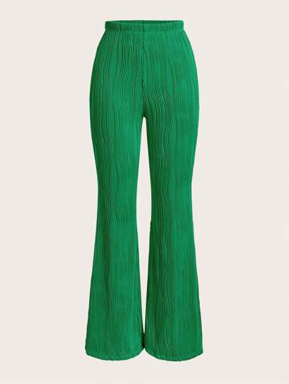 SHEIN EZwear Solid Plisse Flare Leg Trousers - Green - View 1