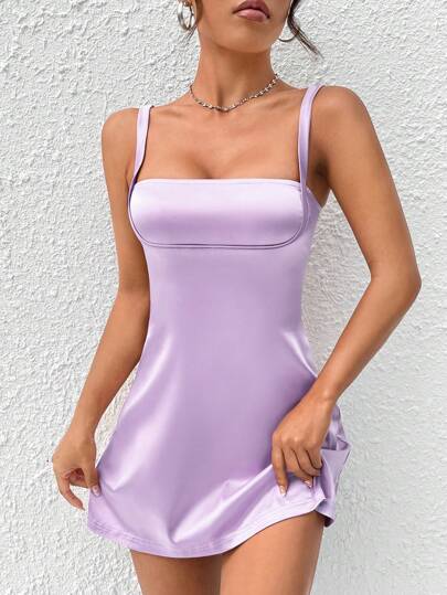 SHEIN PETITE Solid Satin Cami Dress - Lilac Purple - View 1