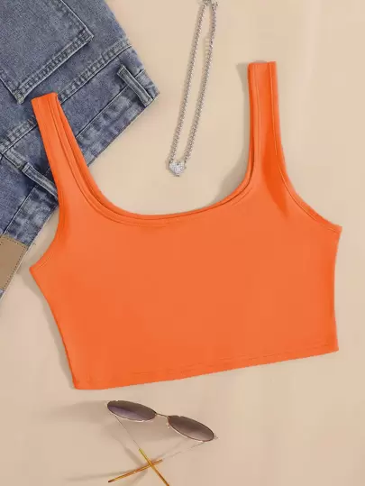 SHEIN Unity Solid Scoop Neck Tank Top - Orange - View 1