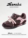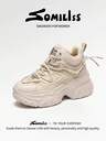 somiliss 5.5cm Platform Lace-Up Chunky Sneakers For Women, Breathable Mesh & PU Leather, Non-Slip Thick Sole, Comfortable Running Shoes, Fashionable Casual Outdoor Walking Shoes, Apricot Color, Autumn