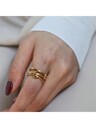 VKHK 1pc 18K Gold Plated Stainless Steel Zirconia Decor Multi-Layer Link Ring, Suitable For Women's Daily And Wedding Party Wear, Gift