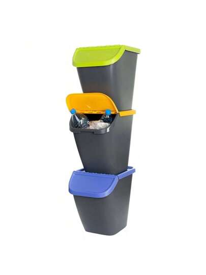 Sorting Waste Bin Recycling 23L Trash Segregation Stackable Lidded 5 Colour Paper Plastic Glass (1, Grey) - Blue - View 3