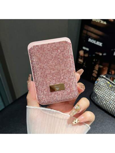 Sparkling Rhinestone Credit Holder With Magnetic Mount Compatible With Iphone 12/13/14/15/16 Pro Max Stylish Accessory For Fashionable Women Mini Wallet Card Wallet Magsafe Wallet - Pink - View 1