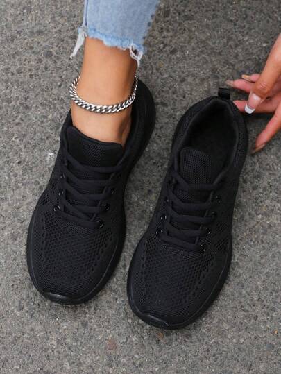 Women's Fashionable Casual Black Soft Lightweight Non-Slip Breathable Sports Running Shoes, Spring & Autumn - Black - View 1