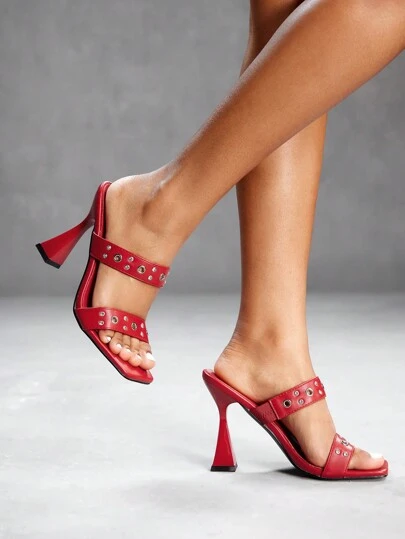 CUCCOO SZL Square Toe High Heel Rhinestone Decor Mule Women's High Heel Sandals Fall - Red - View 1