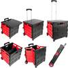 Huini Foldable Shopping Trolley 35L, Heavy Duty Wheeled Crate, Stainless Steel And Plastic, Portable Cart With Telescopic Handle And Lid, Side Locks, Multipurpose Utility Cart For Laundry, Sports, Crafts