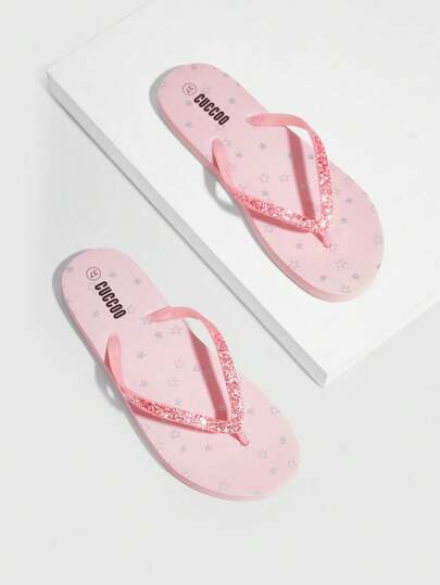 Grefit Star Printed Flat Home & Beach Flip Flops Spring Shoes Spring Break Easter For Casual Beach Style For Christmas Beach Outfit - Baby Pink - View 1