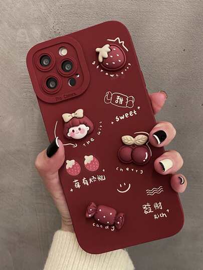Strawberry Decor Phone Case Compatible With IPhone 11,IPhone 13,IPhone 14 Pro Max - Burgundy - View 1