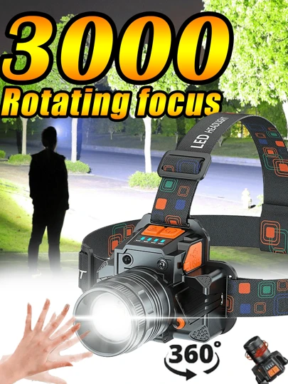 Strong Light Long-Range LED Headlamp Long Range Headlights Rechargeable Outdoor Night Fishing Camping Head Mounted Flashlight - Black - View 1