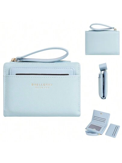 Stylish Exquisite Soft Lychee Buckle Short Multi-Function Large Capacity Wallet Multi-Function Zipper Portable Student Card Clip Coin Purse Cute Fit Suitable Young Student Gift Women Purse Wallet For Cards Card Holder For Women - Blue - View 1