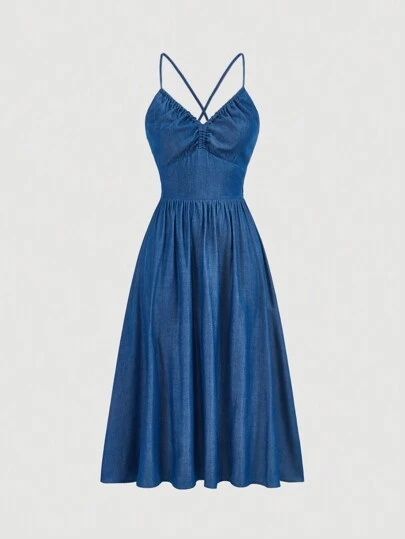 SHEIN MOD Summer Denim Effect Cutout Strappy Dress - Blue - View 1