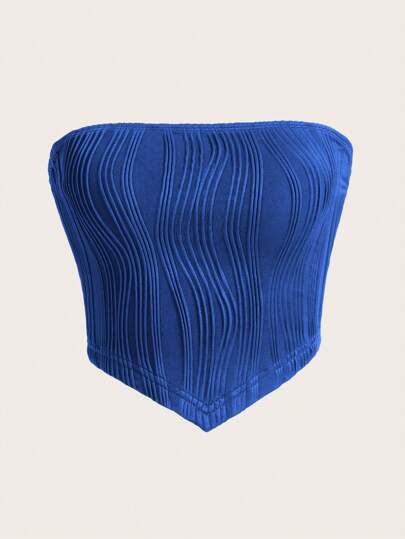 SHEIN EZwear Summer Outfit Hanky Hem Black Knit Tube Top - Royal Blue - View 1