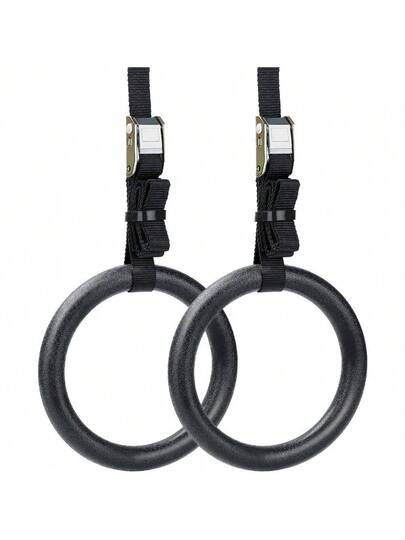 Product description Description: The rings are capable of holding up to 880lbs(400kg). Come with extra 14ft long nylon Straps for greater adjustment lengths. High-grade ABS plastic material, the rings are very sturdy and the bands are pretty strong. Can be used as a muscle fit, skipping rope, boxing, speed rope, jumping rope. Advanced Anti-skid tread design keeps the rings stable, allows for quick mounting. Easy adjustment and lightweight. Portable and easy to set up; straps are easily adjustable to suit your needs. Unlimited body-weight exercises that engage your muscles and core. Great to use for push-ups, pull-ups, dips, body rows, iron cross, muscle-ups, and so on. Challenge yourself with the muscle-up, a move that works every muscle in your upper body. Accessible for beginners, with gentle progressions towards harder skills. Specification: Rings Pipe Diameter:3cm(1.18in) Rings External Diameter:22cm(8.6in) Nylon Webbing Straps(W x L):3cm(1.18in) x 450cm(14.76ft) Maximum Load: 880lbs(400kg) Ring Material: High-Grade ABS Color: Black Package Included: 2x Gymnastic Rings 2x Exercise Straps with Metal Buckles