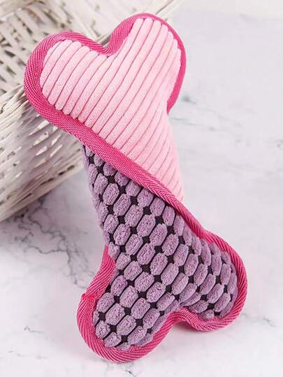 Supet 1pc Plush Dog Bone Shaped Interactive Toy With Sound For Indoor And Outdoor Use - Pink - View 1
