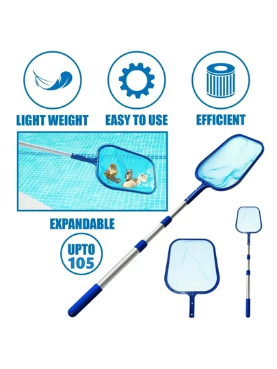 Swimming Pool Debris Leaf Skimmer Mesh Net 3 Way Cleaning & Telescopic Pole - Blue - View 1