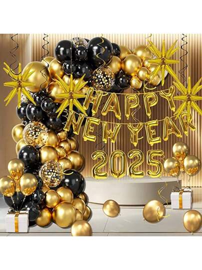 1Set  Happy  New  Year  Party  Decoration  Black  And  Gold  Balloon  Wreath  Arched  Set  Happy  New  Year  2025  Balloon  Banner  For  New  Year  Decoration  2025 - Multicolor - View 1