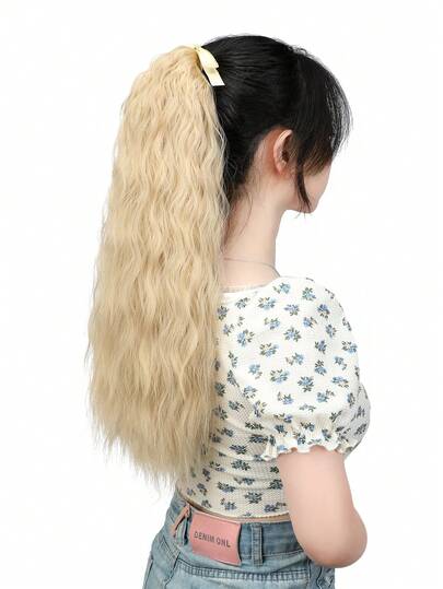 Synthetic Fiber 24 Inches Ponytail Hair Extension For Women: Corn Wave Long Curly Hair Band-type Extension Suitable For Daily Wear - Beige - View 1